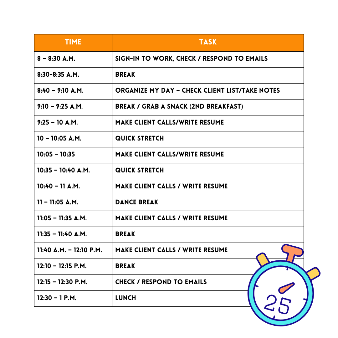 I started blocking out my day, hour by hour, starting with my morning routine. It helped me see where my time was going and ensured I prioritized what mattered most.